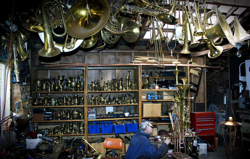 Artistic integrity merges with mechanical excellence making Walker’s works renowned for their enduring construction and timeless quality. His musical instrument sculptures age graciously with time receiving patina as they absorb the elements outside or glimmer proudly protected indoors. The compositions seem to develop their dream like quality even further over the years, inviting the viewer on a journey of unlimited imagination.