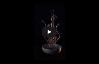 Made from two trumpets, a trombone and a collection of small brass ornaments, the twin trumpet trombone fountain offers simple but elegant design. A water wheel and two water propelled marbles spinning in the bells of the trumpets add graceful motion.